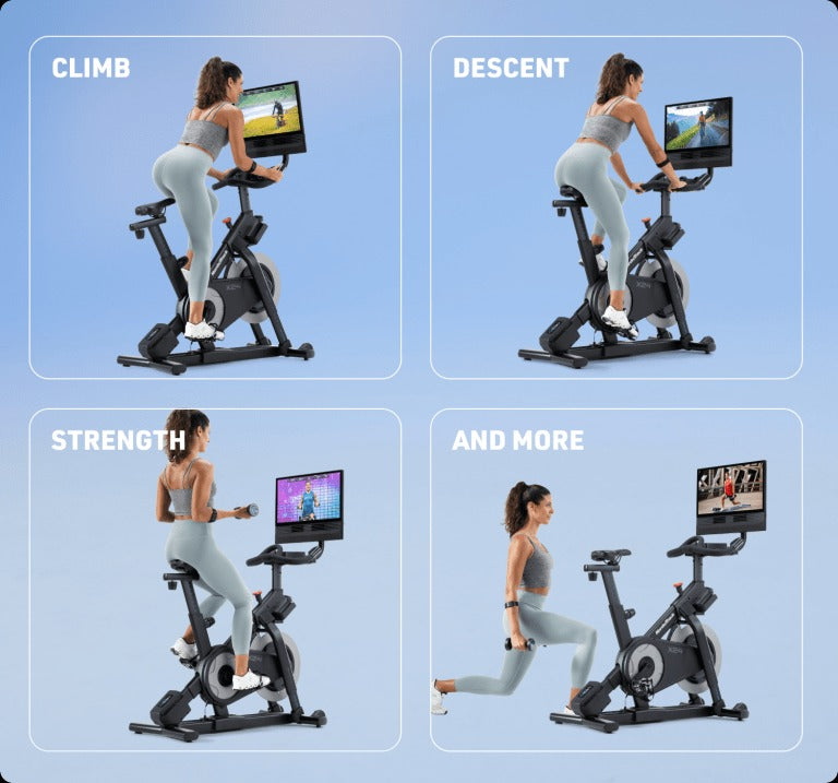 One machine for any workout. Hill climbs, descents, sprints, then turn the screen for strength, yoga, and more.